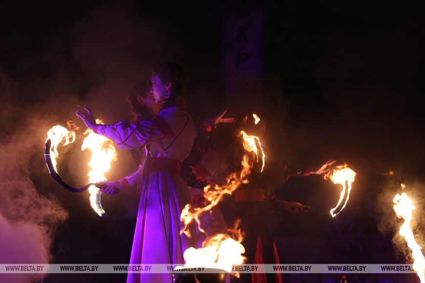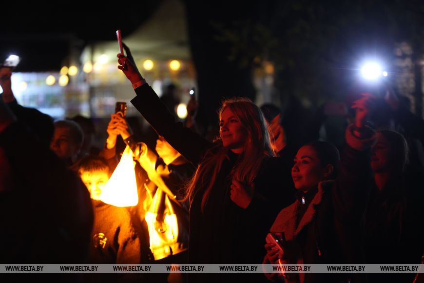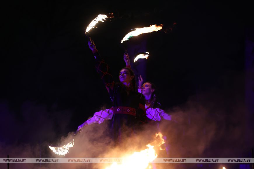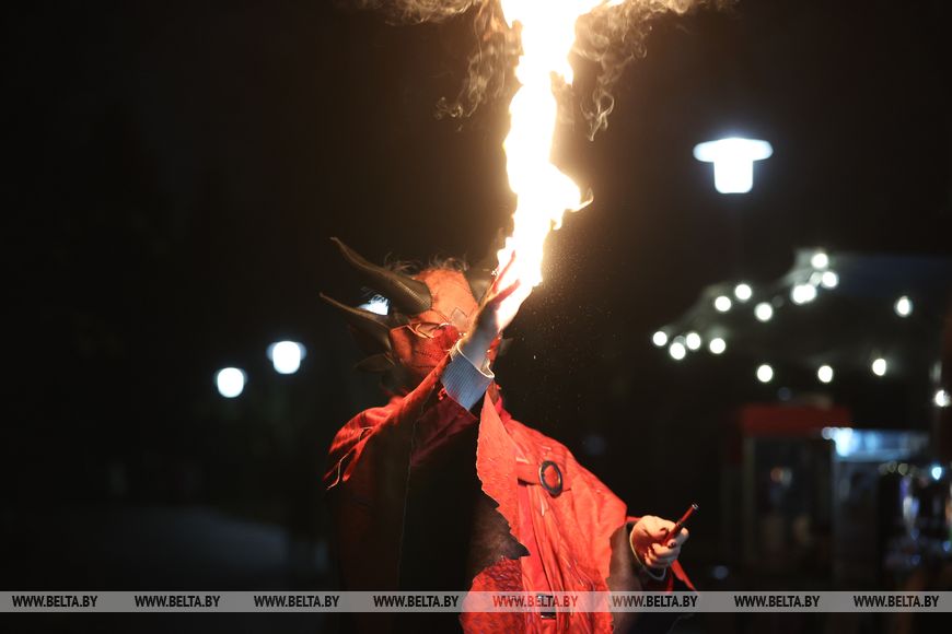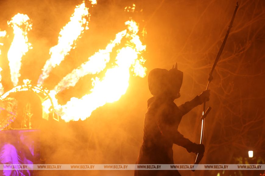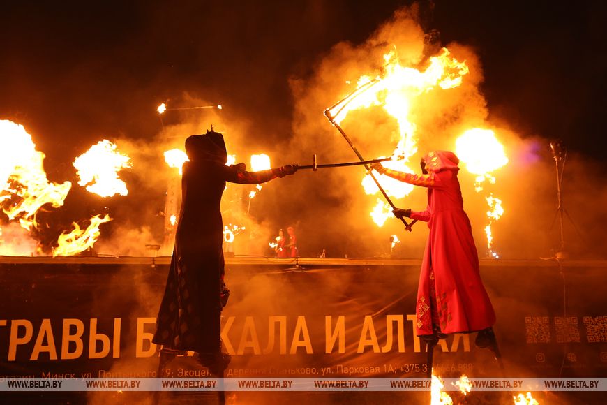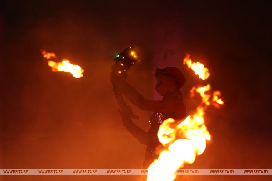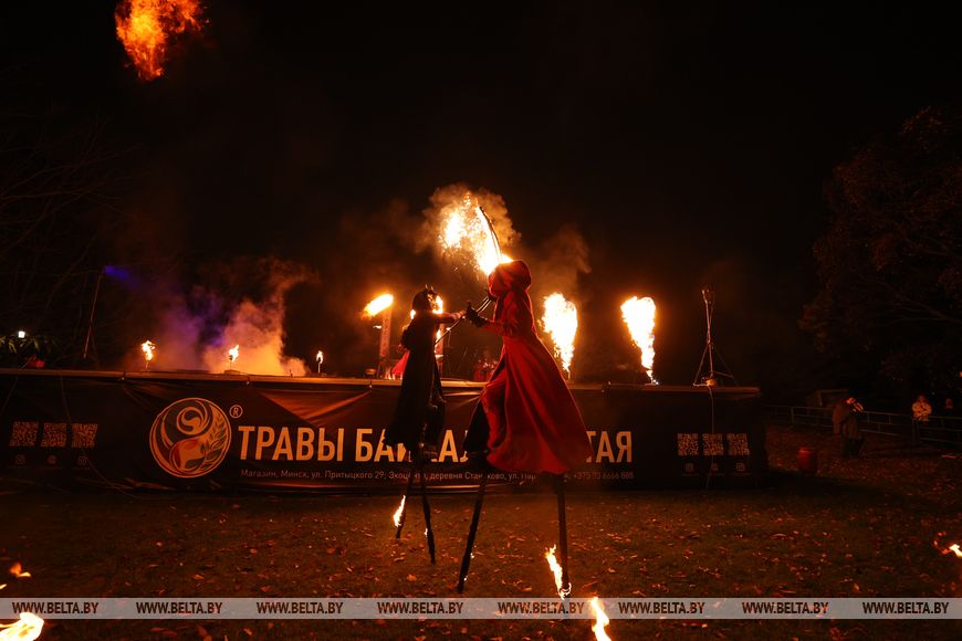 25 октября, Минск /Корр. БЕЛТА/. 24 октября в Центральном ботаническом саду НАН Беларуси прошел первый день масштабного фестиваля огня «Феникс». Гостей ожидала захватывающая шоу-программа, тематические локации, огненные и осенние фотозоны, бесплатная площадка для детей и разнообразный фуд-корт с согревающими угощениями. Кульминацией вечера стало огненное шоу цирка KRESIVA.-0-