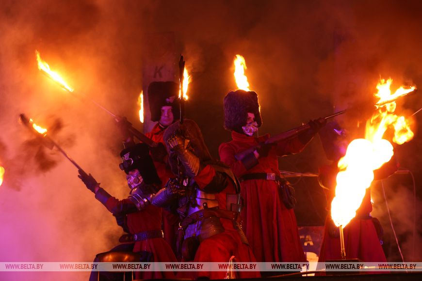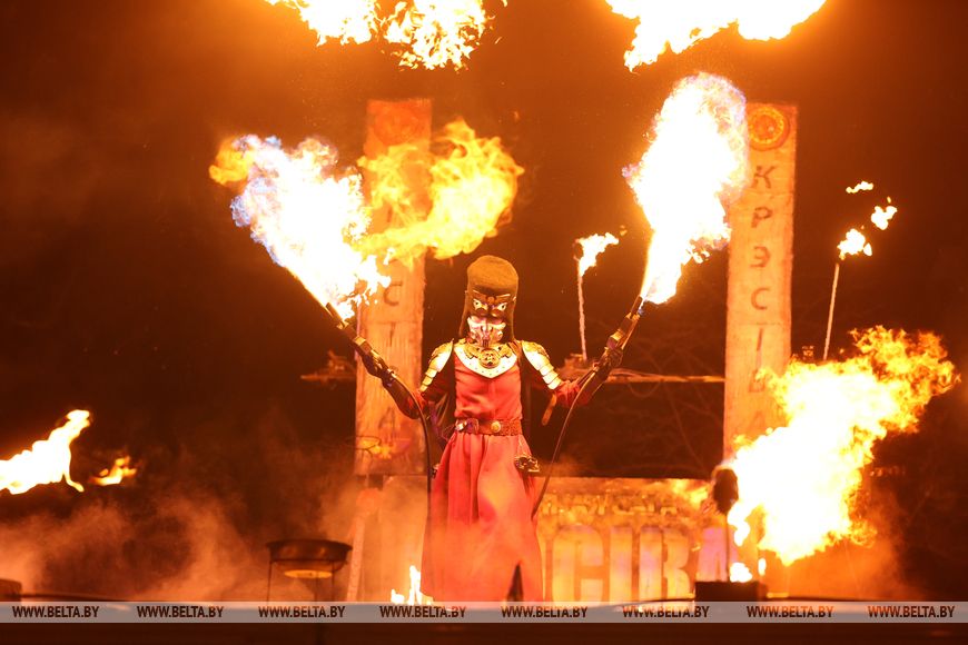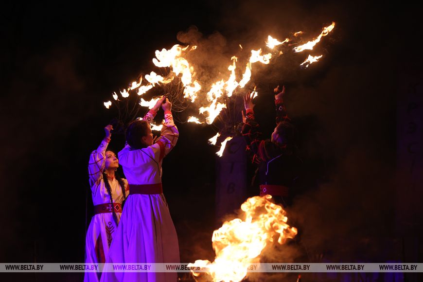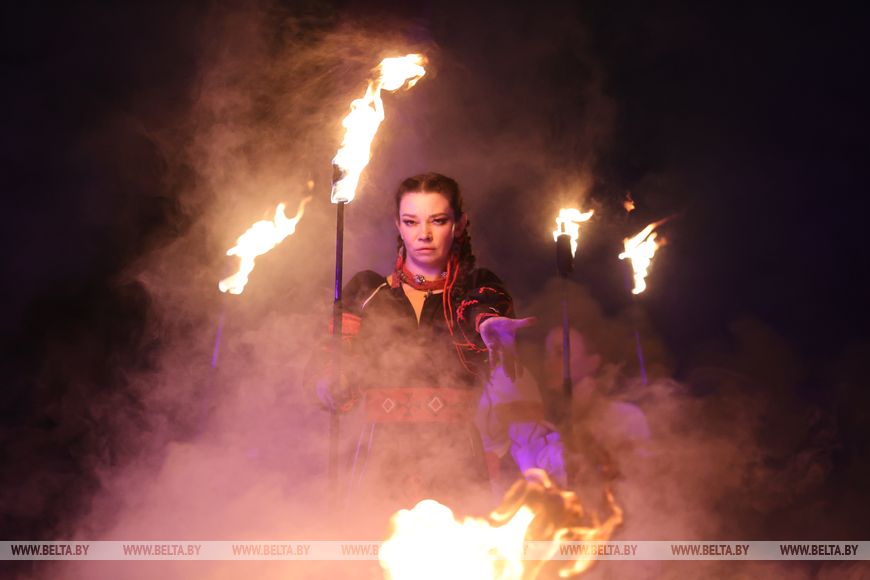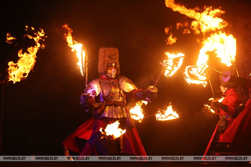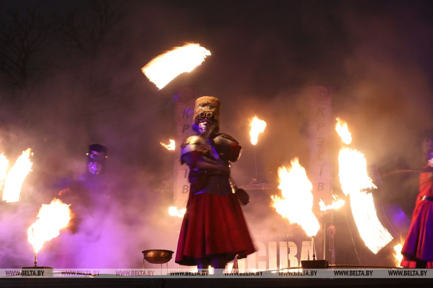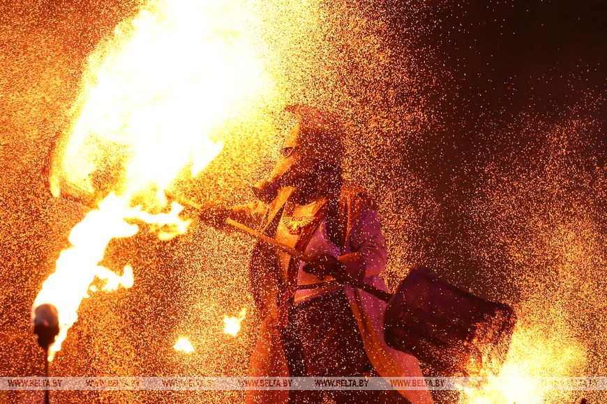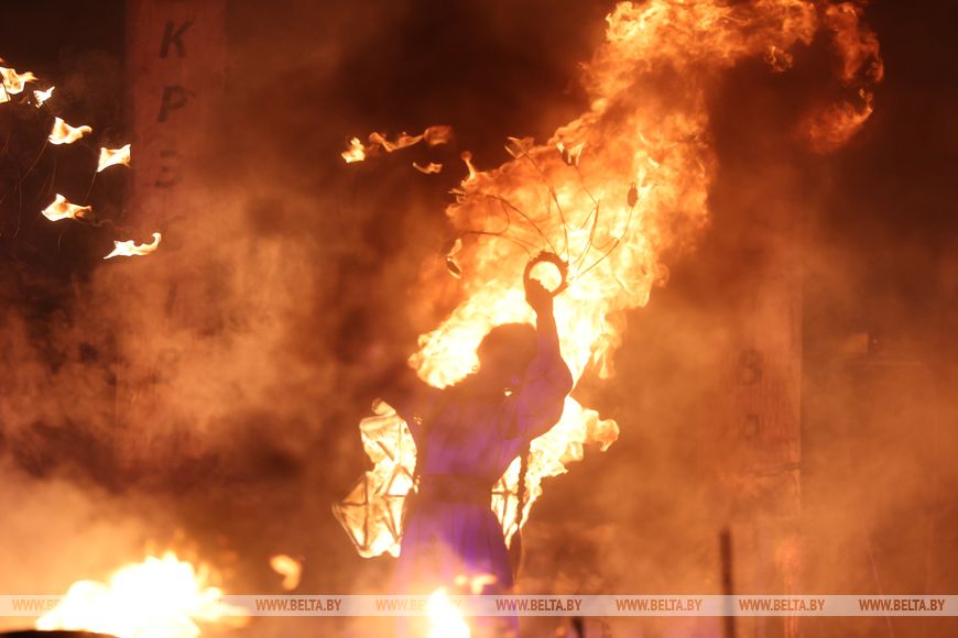 25 октября, Минск /Корр. БЕЛТА/. 24 октября в Центральном ботаническом саду НАН Беларуси прошел первый день масштабного фестиваля огня «Феникс». Гостей ожидала захватывающая шоу-программа, тематические локации, огненные и осенние фотозоны, бесплатная площадка для детей и разнообразный фуд-корт с согревающими угощениями. Кульминацией вечера стало огненное шоу цирка KRESIVA.-0-