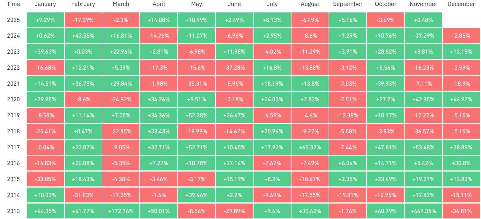 Октябрь и ноябрь статистически считаются самыми благоприятными месяцами для роста биткоина, но в этом году рынок отошел от привычной сезонной модели. Термин «Uptober» (от английских слов up («вверх») и October), традиционно отражавший сезонный рост криптовалют, в этом году себя не оправдал.